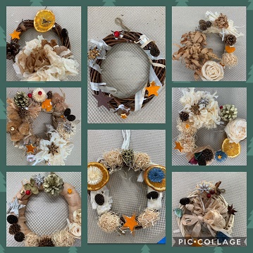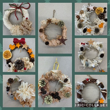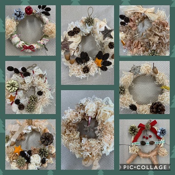 鉋くずのリースづくりを美浜文化会館でイベントを行い、