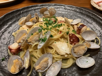 お刺身と2日目は鯛と蛸とアサリのパスタにして頂きました。