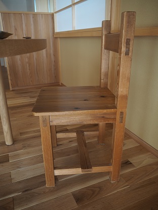 オープンハウス会場に大工が造った椅子があります。