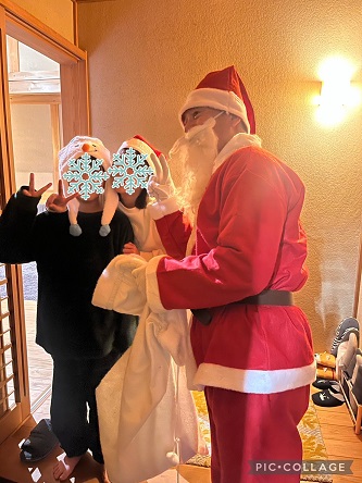 23日、24日で小学生のお子さまのいるご家庭にサンタクロースとして訪問させていただいております。