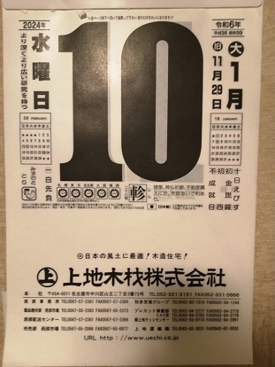 今年は上地木材さんのカレンダーで、この日めくりカレンダーは材木屋さんとか製材さんから頂くのが多いです。