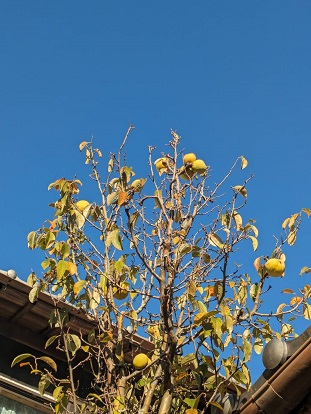 庭木の花梨がまた今年も身をつけました。