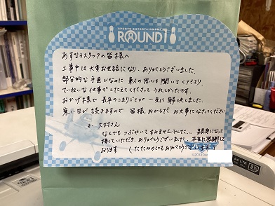 メッセージも添えられており、お客さんに喜んでいただけたようです。