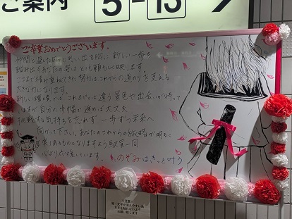 JR名古屋駅の改札で卒業生に向けたエールの掲示板が掲げてありました。