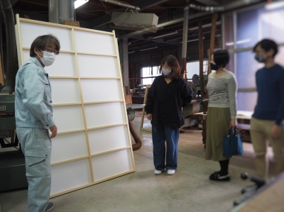 木製建具の製作過程を建具屋さんの工場まで見学に行って貰いました。