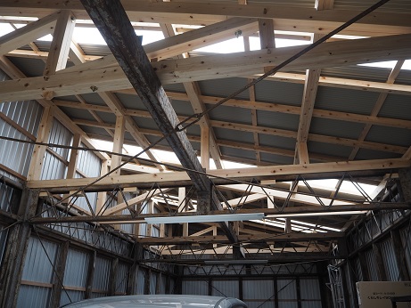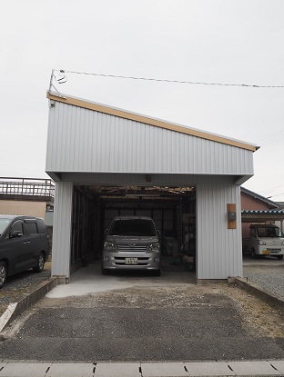 昭和40年代の木造と鉄骨のハイブリッドの車庫兼倉庫