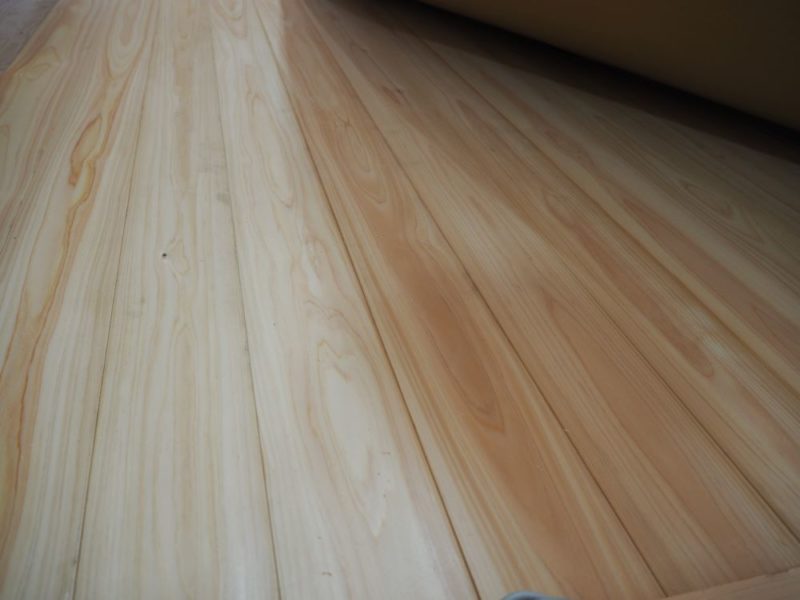 桧のフローリング 2022.02.02 桑名の現場では桧のフローリングを施工が進んでおります。 桧は柔らかすぎず、固すぎず、桧舞台とよばるように 昔から日本人にも親しまれてきました。 空間をきりっと引き締める素材でもあります。 < >