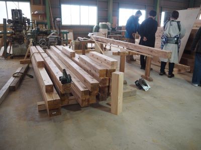 作業場の見学 2022.02.05 現在進行中のお客さまに完成間近の現場と作業場の見学にお越し頂きました。 つくる過程をご覧いただける事は、私ども作りてと致しましても嬉しい限りです。 集成材や人工乾燥材では便利な反面、木材が工業製品となっており、 香りも色艶もありませんが、 無垢の木ならでは持ち味もあります一方、割れや反り、縮みもありますが、 適材適所に使い分けて、色艶の良さと木の香りが住まいてにも安らぎを与えてくれます。 < >
