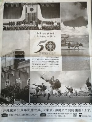 今日で沖縄の本土復帰の50年の日になるようです。