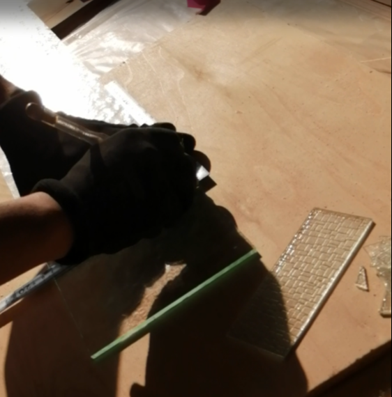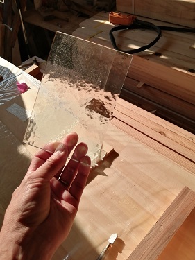 ガラス切り 2022.06.10 水回りの改修工事の現場の建具に入る装飾ガラスを大村くんがカット 始めての挑戦でしたが、上手く切る事が出来ました。 夕方に建具屋さんに持ち込んで、明日現場で建具を取付けて頂きます。 < >