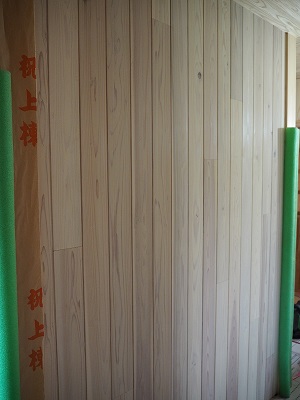 杉板 2022.08.06 壁板の杉板を施工しました。 薄い白いペイントを施し、木目はうっすらと出るようしました。 ここの壁はご家族の写真やお子さんのものを貼ったり、飾ったりする場所になります。 良い感じだと思います。 < >