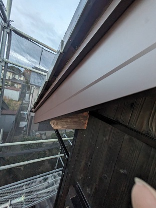 外壁塗装工事の現場ですが、破風板が腐食していたので、板金を巻いて木部を保護いたしました。