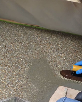 洗い出し 2026.03.04 桑名の現場の土間の洗出しの工事を進めて頂いております。 洗出しは細かい骨材を埋込み仕上げる直前で表面のモルタルを拭き取り出して、 骨材を表面に見せてくる技法です。 今ほとんどが土間はタイル仕上げが多いですが、 表面は滑らないですし、お勧めの仕上げのひとつです。 今日も1日よろしくお願いいたします。 <